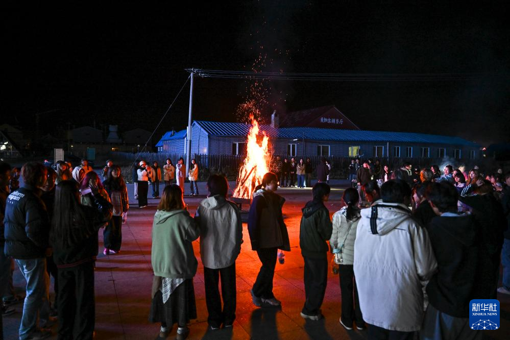 9月17日,在内蒙古呼伦贝尔市额尔古纳市恩和俄罗斯族民族乡恩和村,游客参加篝火晚会。