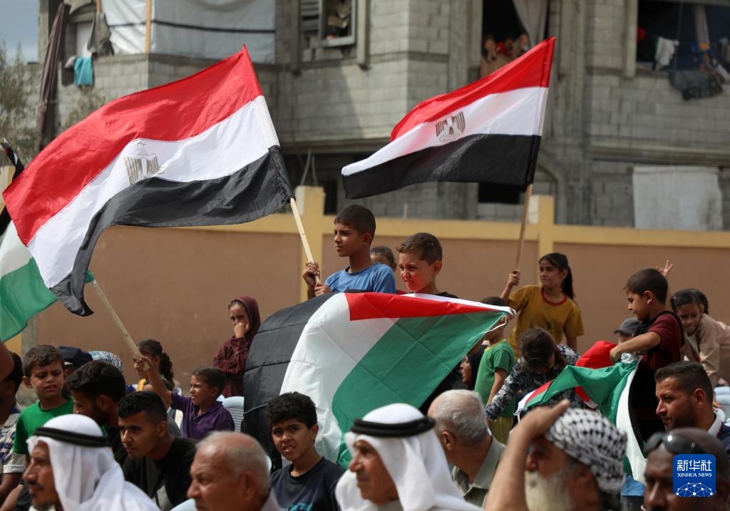 10月9日,在加沙地带中部代尔拜拉赫,巴勒斯坦民众在获悉加沙停火协议的消息后庆祝。