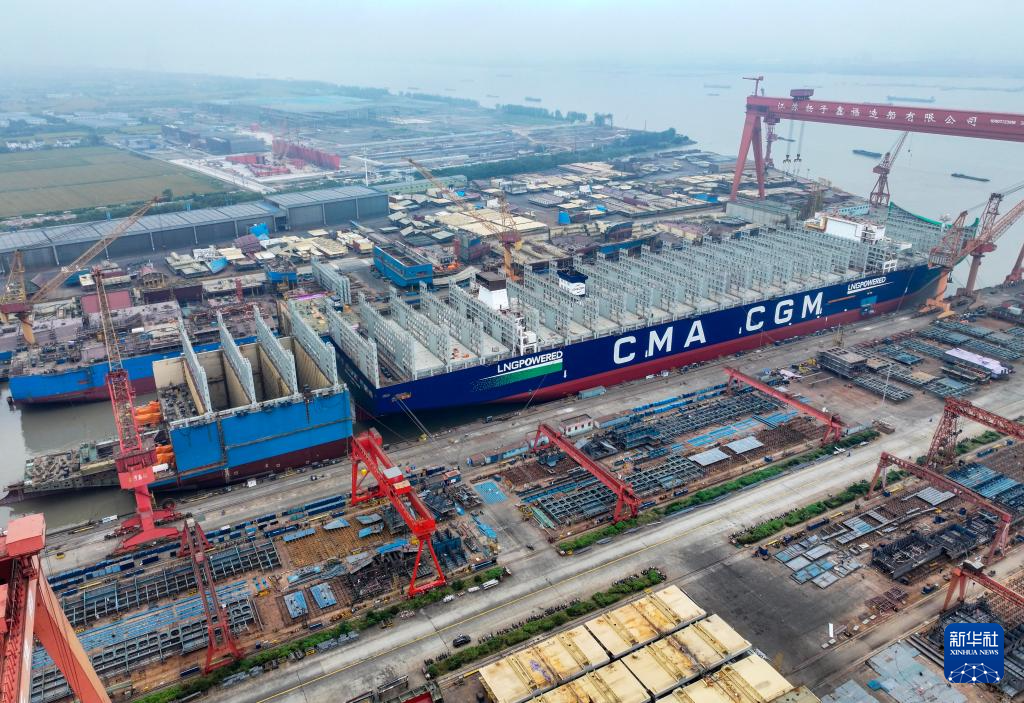 10月14日拍摄的位于江苏省江都经济开发区的扬州中远海运重工有限公司生产厂区(无人机照片)。