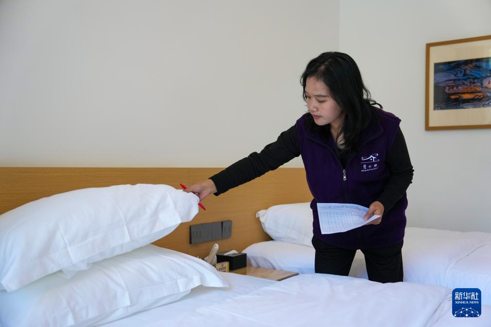 12月20日,曼海村村民、村子运营团队成员赵云芳在民宿内检查。
