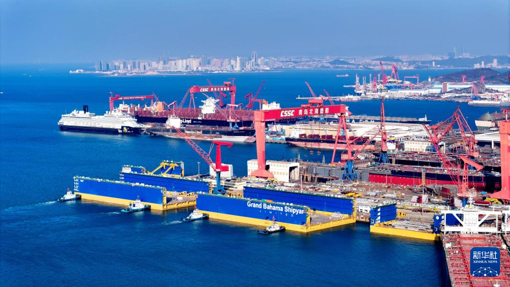 12月24日,在青岛海西湾船舶与海洋工程产业基地,中船北海造船在建造大型船舶(无人机照片)。