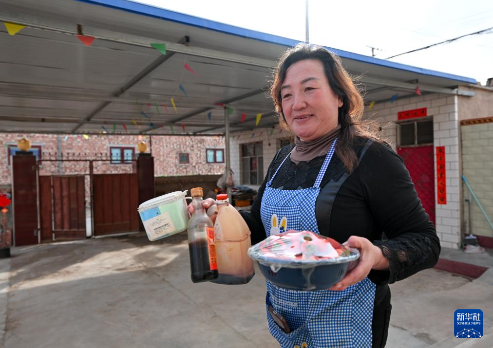 2月16日,吴维东的妻子韩树琴在准备食材和调味品。