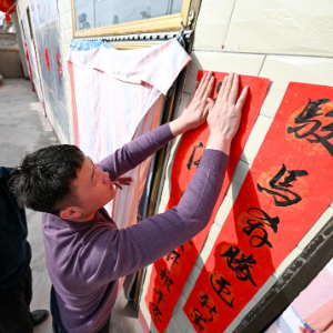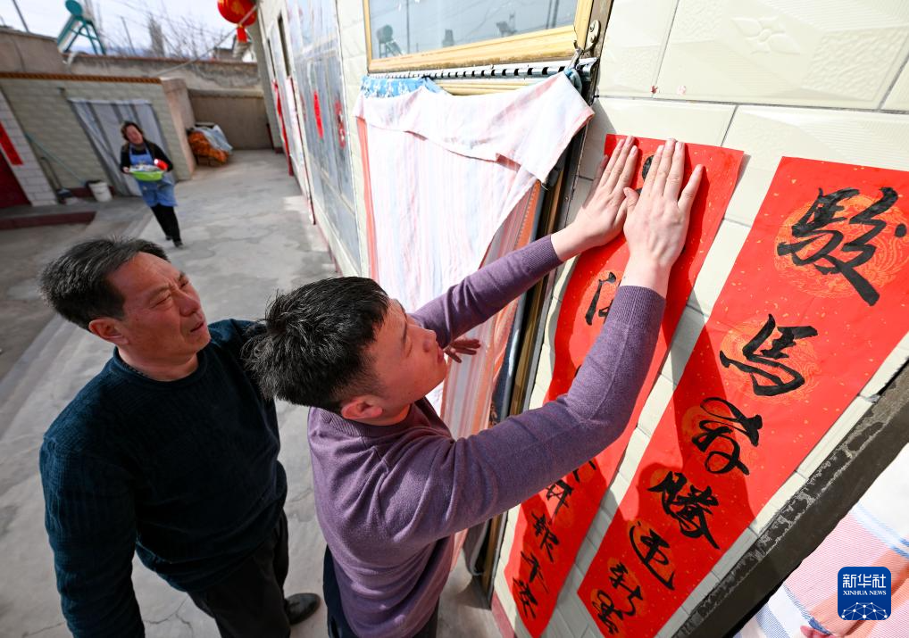 2月16日是农历除夕,在宁夏银川市永宁县闽宁镇福宁村,吴维东在家中小院挂好对联,一家欢度春节。