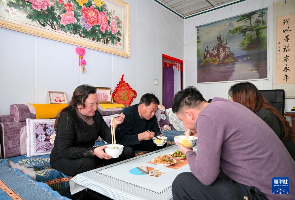 2月16日,吴维东一家在福宁村的家中吃传统的长面。晚上准备去大哥家吃团圆饭。