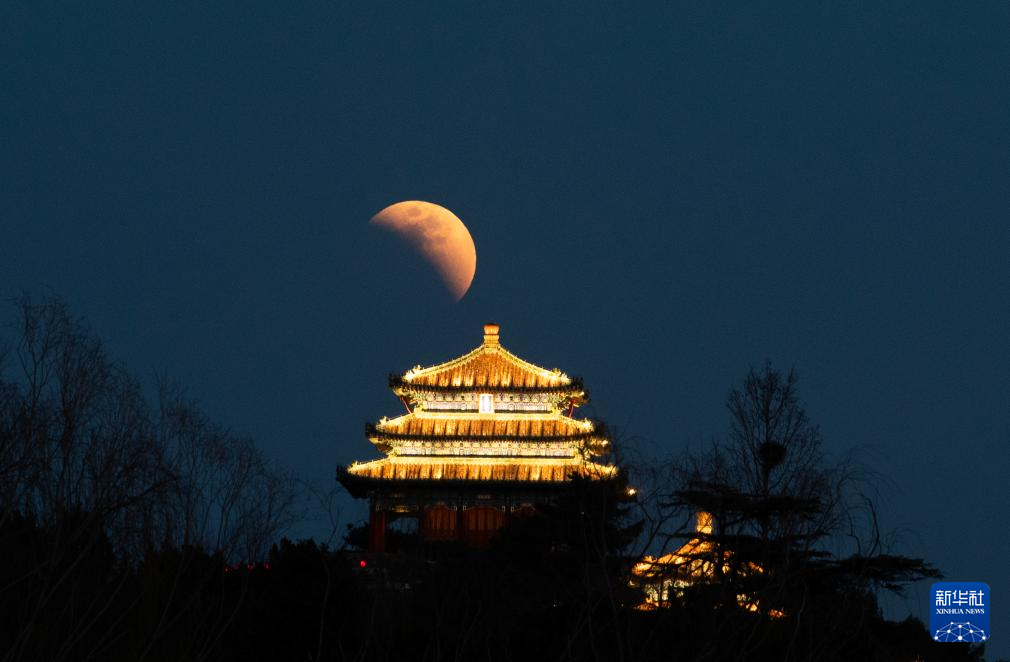 这是3月3日拍摄的北京景山万春亭和月全食。