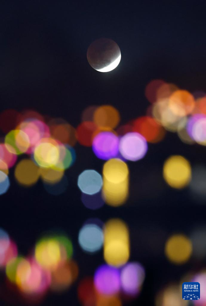 这是3月3日在北京国金大厦拍摄的月全食。