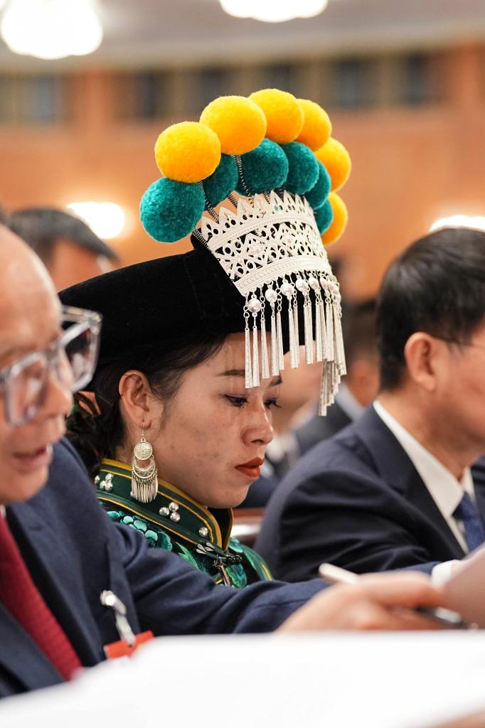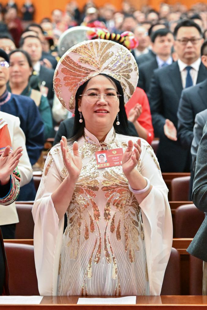 3月5日,全国人大代表郭红静出席十四届全国人大四次会议开幕会。