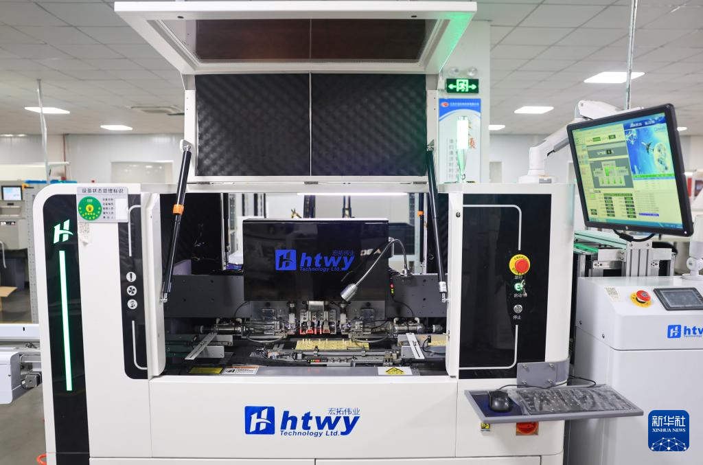 3月16日,在江苏省靖江市西来镇的江苏沙龙机电科技有限公司电子制造生产车间内,贴片机进行电子元件贴装作业。