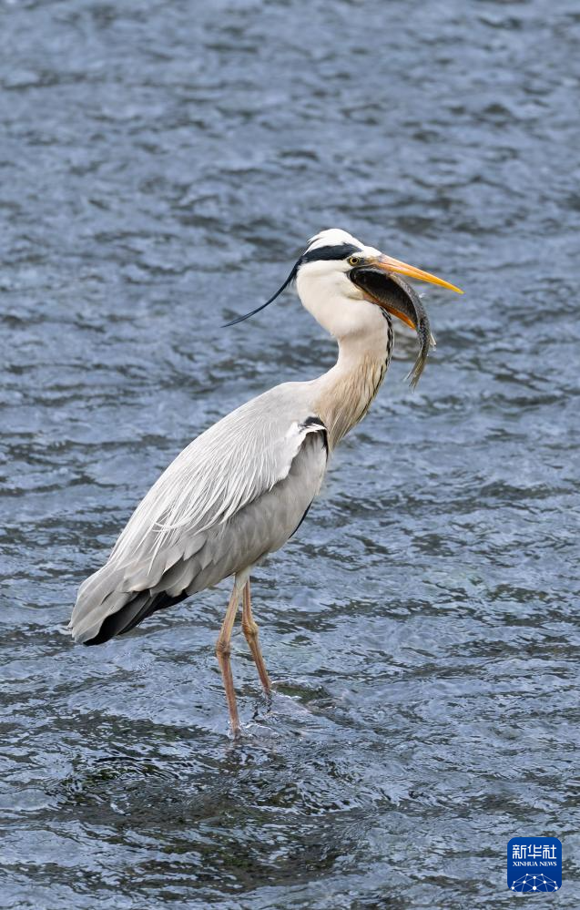 3月17日,鹭鸟在成都锦江河道中“站桩”捕鱼,吸引众多市民围观、拍照。