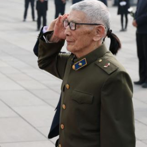 4月3日,抗战老战士代表储渭向抗战英烈敬礼。