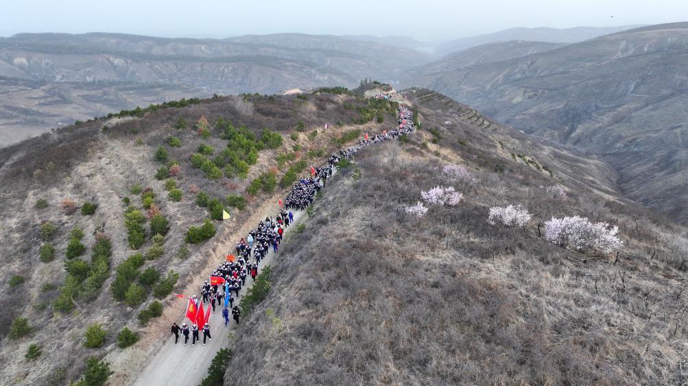 4月3日,宁夏固原二中和弘文中学等学校师生及各界人士3000多人,清晨5点从固原市出发,徒步前往位于彭阳县的任山河烈士陵园,祭奠长眠在那里的396位烈士,全程往返108里。