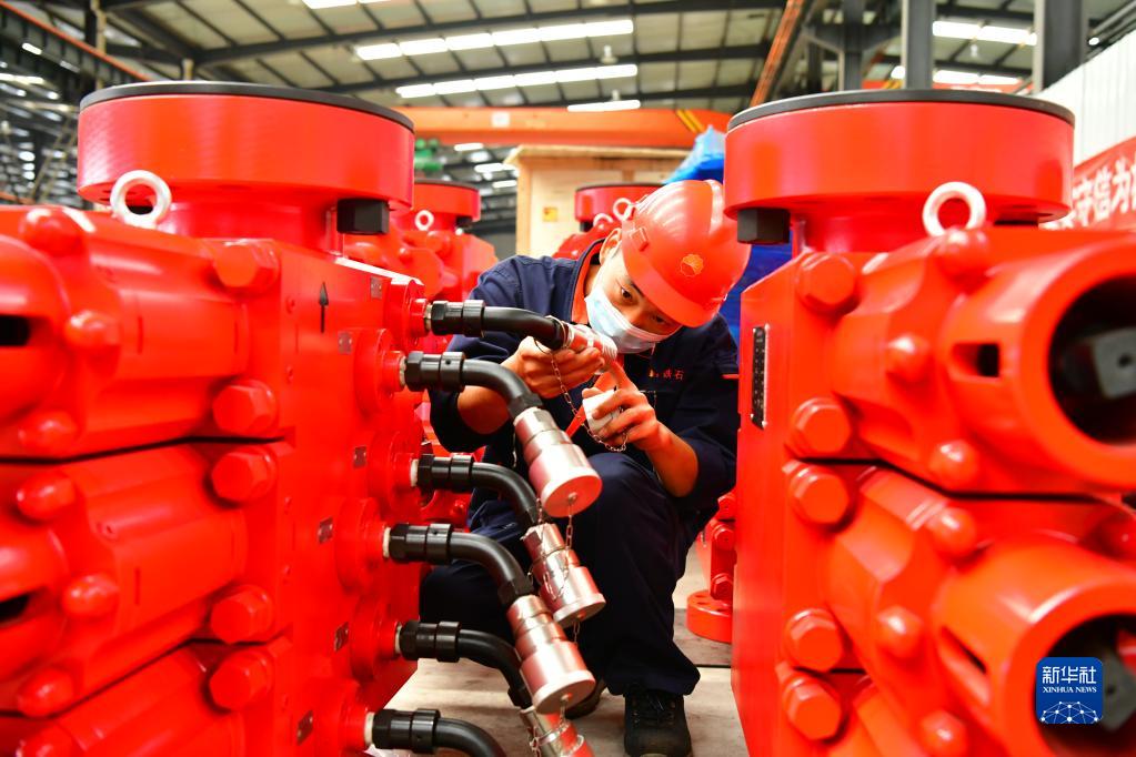 10月15日,在位于河北省任丘市的河北新鐵虎石油機械有限公司,工人在檢查產品質量。新華社記者 牟宇 攝