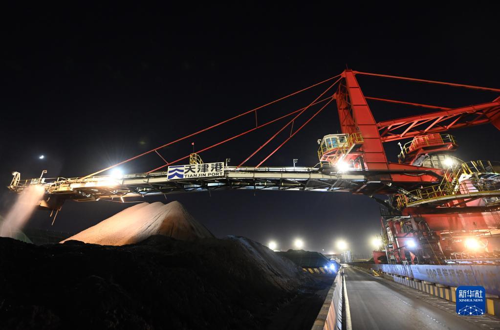 這是10月11日拍攝的天津港煤碼頭夜間作業一景。新華社記者 李然 攝
