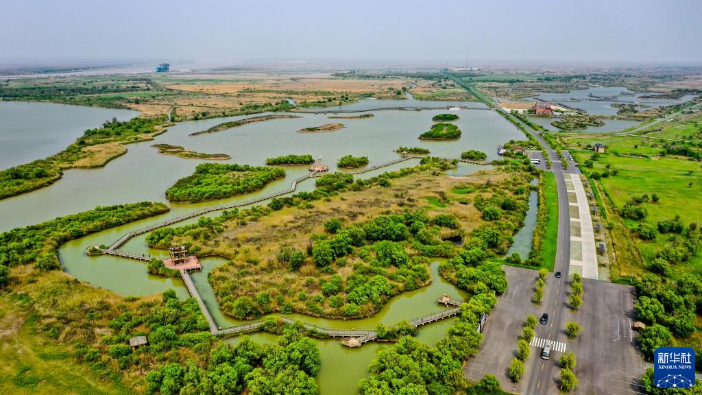 這是山東黃河三角洲國家級自然保護區景色(5月13日攝,無人機照片)。新華社記者 郭緒雷 攝