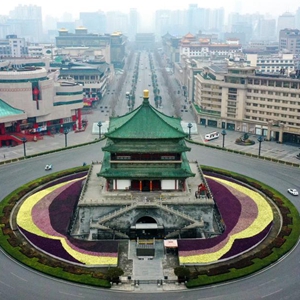 2021年12月23日拍攝的西安鐘樓(無人機照片)新華社記者劉瀟 攝