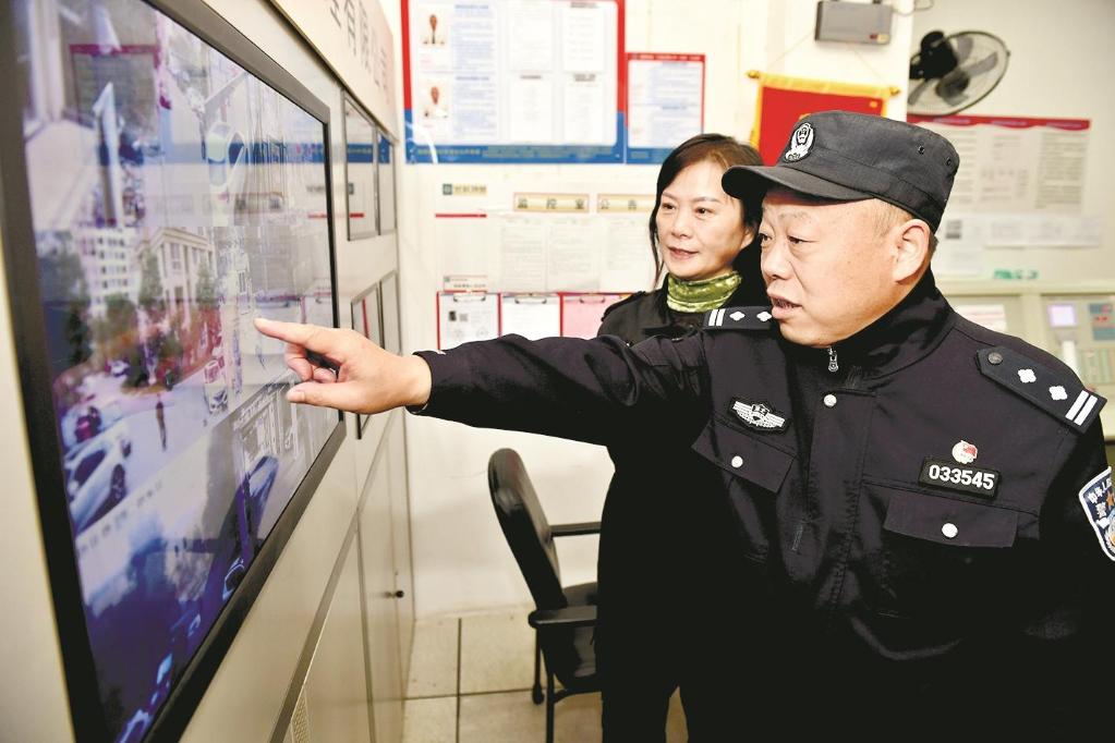 胡永鵬正在查看轄區內的監控錄像。(武漢市公安局青山區分局提供)
