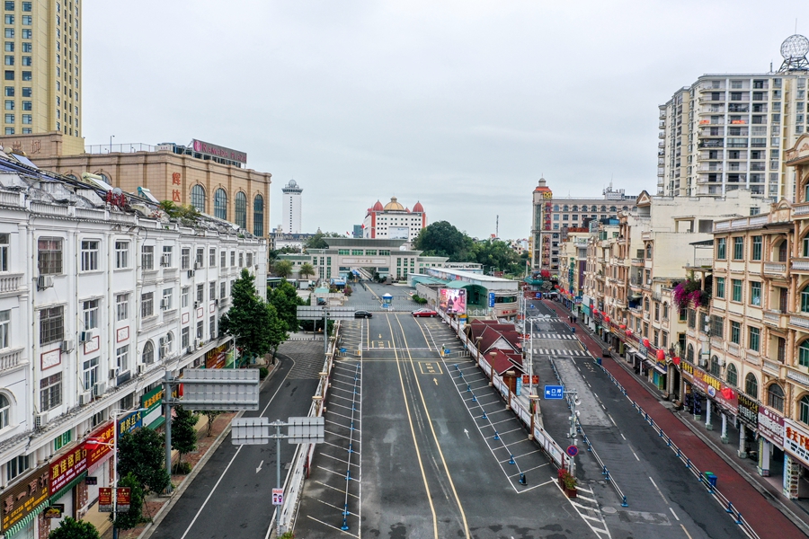 ↑這是疫情發生后的東興口岸及附近商業街(2021年12月28日攝)。