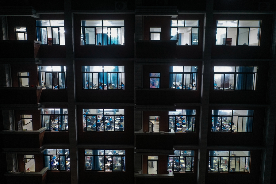 ↑1月5日晚,東興中學高三學生在上晚自習。