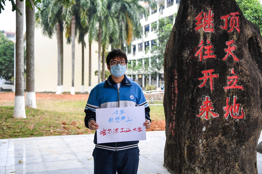 “我今年想順利考上哈爾濱工業大學,以后當一名飛行器設計師,這是我從初中時就立下的志愿?!?/p>