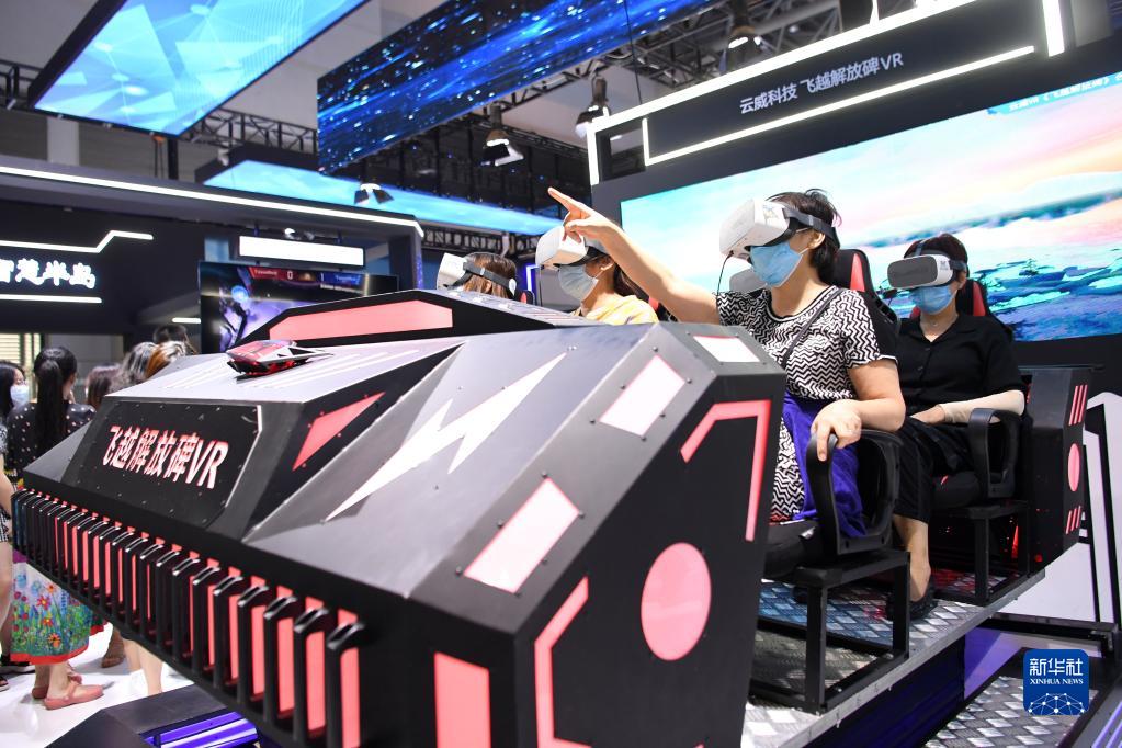 2021年8月23日,觀眾在2021智博會上通過VR技術體驗重慶美景。新華社記者 唐奕 攝