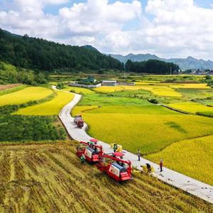 2021年9月15日,貴州省龍里縣灣灘河鎮羊場社區的農民在搶收稻谷(無人機照片)。新華社記者 楊文斌 攝