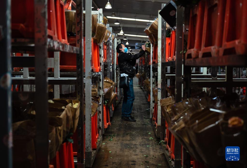 1月21日,質檢員在昆明國際花卉拍賣交易中心內對鮮花進行質量檢驗。新華社記者 王冠森 攝
