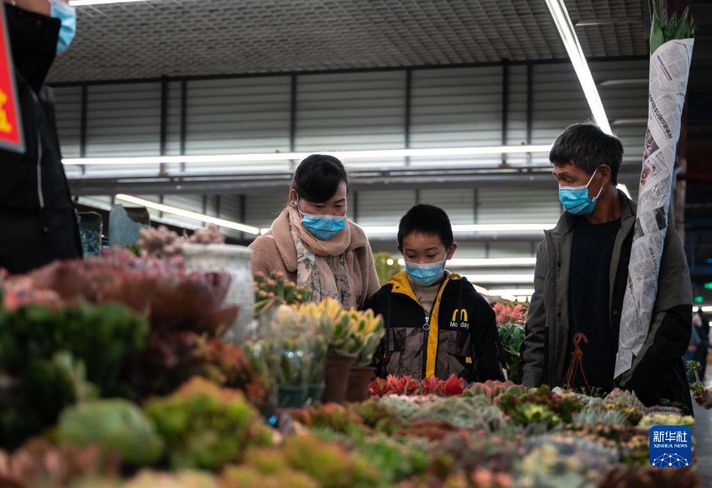 1月21日,顧客在昆明斗南花卉交易市場選購多肉植物。新華社記者 王冠森 攝