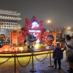 1月30日,市民在前門大街觀賞春節和冬奧主題景觀燈。新華社記者李欣攝