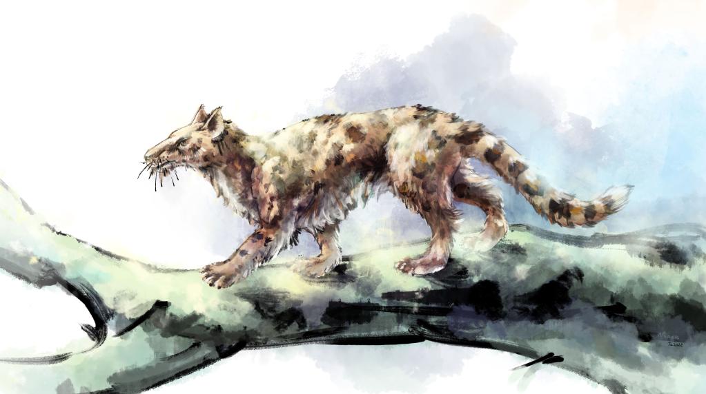 南京古生物博物館展陳部主管、古生物學博士賀一鳴介紹,包括貓科在內的所有食肉動物的祖先,都可以追溯到4000萬至5000萬年前的小古貓類。小古貓外形像貓,頭顱較長,用手掌和腳掌走路,有適合奔跑的腰椎、發達的大腦和鋒利的牙齒。隨著小古貓的后代分化,其中的一支進化出了現在的貓科。