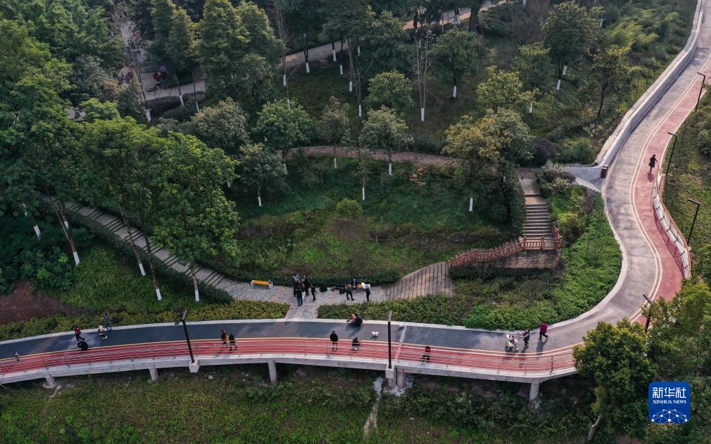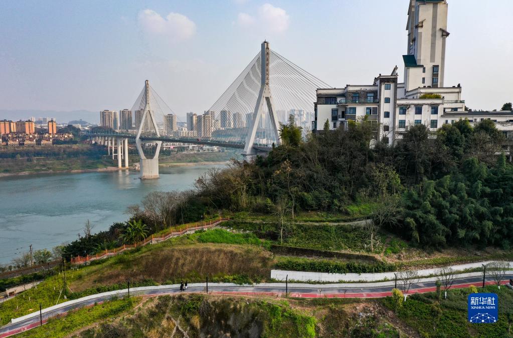 這是2月15日拍攝的位于重慶市大渡口區的重鋼崖線山城步道附近景色(無人機照片)。新華社記者 王全超 攝