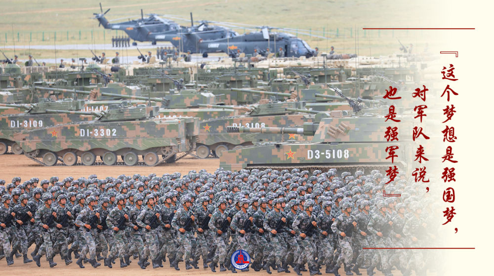 “貫徹習近平強軍思想,貫徹新時代軍事戰略方針……加快機械化信息化智能化融合發展,全面加強練兵備戰,提高捍衛國家主權、安全、發展利益的戰略能力,確保二〇二七年實現建軍百年奮斗目標。”