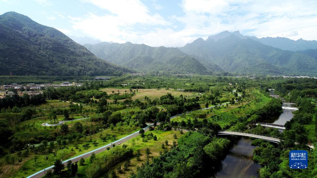 這是陜西省西安市長安區秦嶺違建別墅“群賢別業”拆除后建設的秦嶺和諧森林公園(2019年7月26日攝,無人機照片)。新華社記者 劉瀟 攝