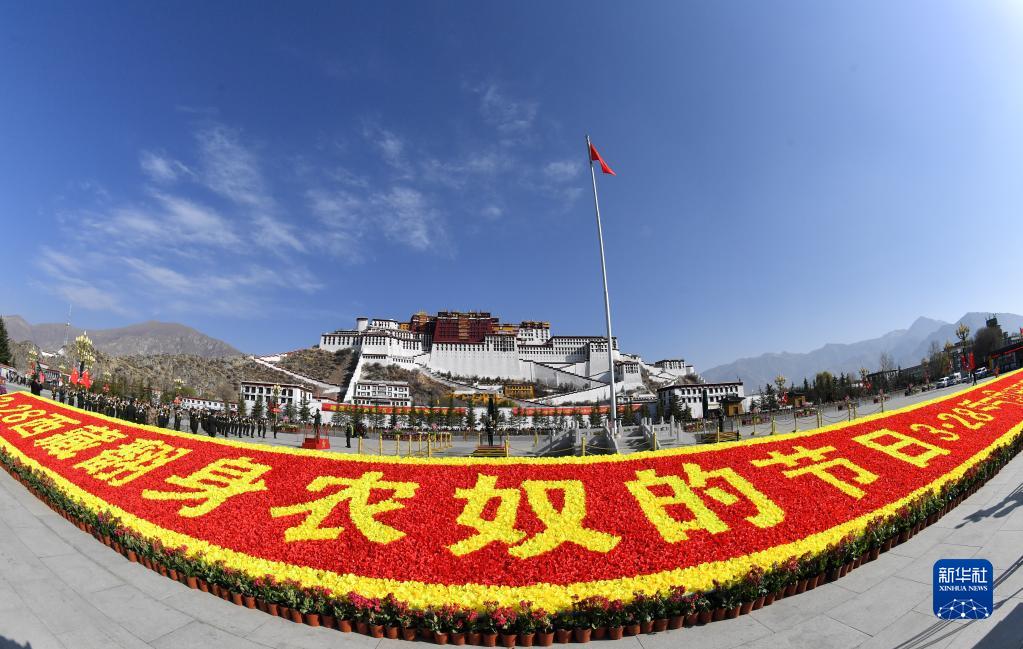 3月的雪域高原,楊柳吐綠,又一個春天如約而至。西藏各族群眾穿上節日的盛裝,跳起歡快的鍋莊舞,迎接西藏百萬農奴解放紀念日。