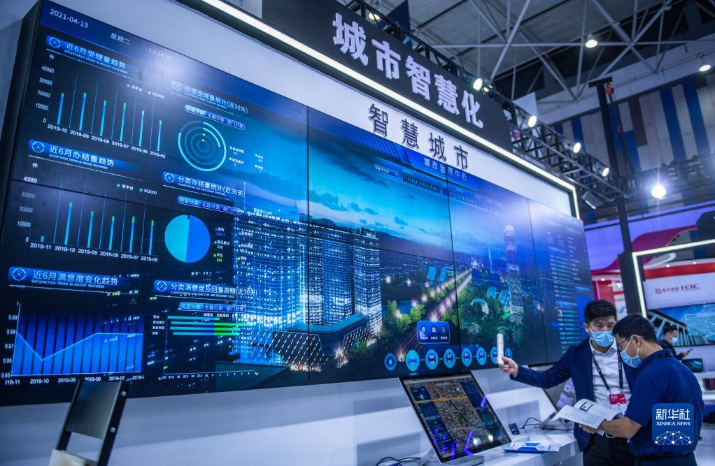參會者在2021中國國際大數(shù)據(jù)產(chǎn)業(yè)博覽會上了解智慧城市治理中心(2021年5月26日攝)。新華社記者 陶亮 攝