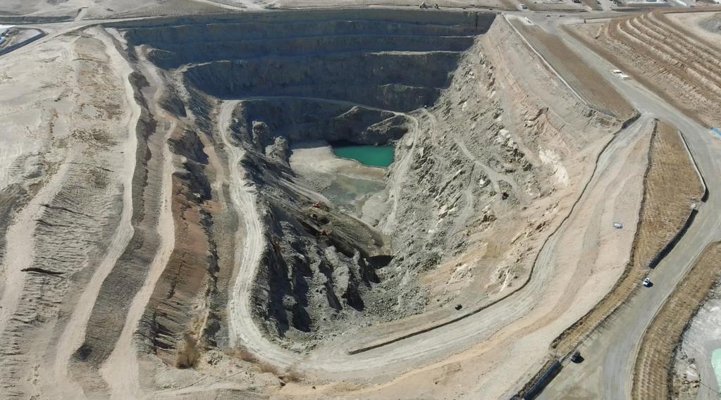 生金礦業(yè)公司公忽洞鐵礦深達97米的越界采坑(無人機照片)。新華社記者 恩浩 2022年3月27日攝
