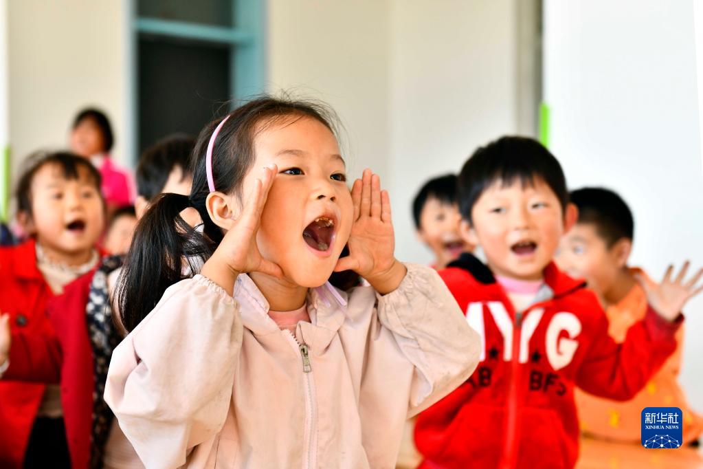 在山東省菏澤市東明縣尚莊社區幼兒園,小朋友在學唱兒歌(2021年10月12日攝)。新華社記者 郭緒雷攝