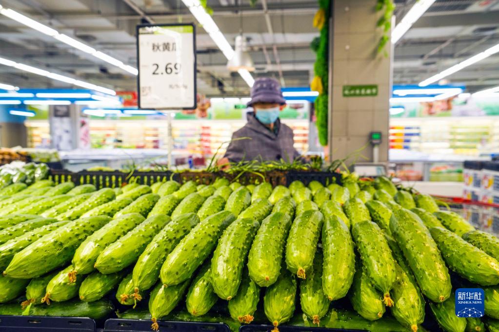 消費者在河北唐山遵化市一家超市選購蔬菜(4月11日攝)。新華社發(劉滿倉攝)