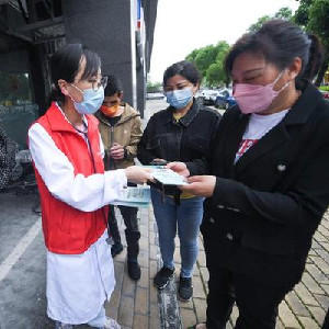 4月28日,在浙江湖州龍泉街道祥和社區(qū)幸福鄰里中心,龍泉街道社區(qū)衛(wèi)生服務(wù)中心的醫(yī)生志愿者向人們發(fā)放職業(yè)病防治法宣傳手冊,普及健康知識。新華社記者 徐昱 攝