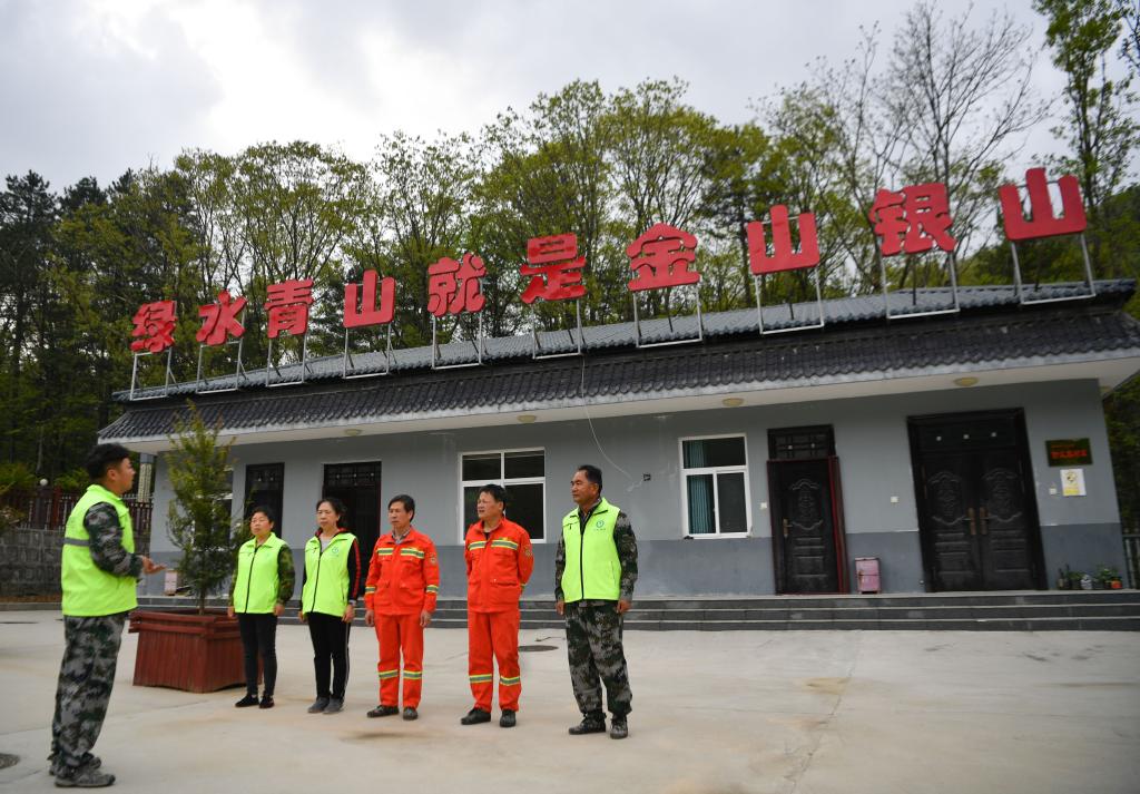 靜峪管護站部分護林員在開晨會。(新華社記者張博文 攝)