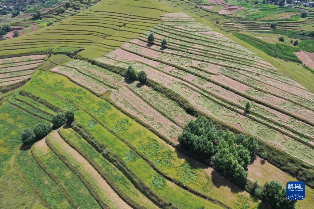 這是寧夏固原市西吉縣的小雜糧種植基地(2020年8月13日攝,無人機照片)。新華社記者 盧鷹 攝