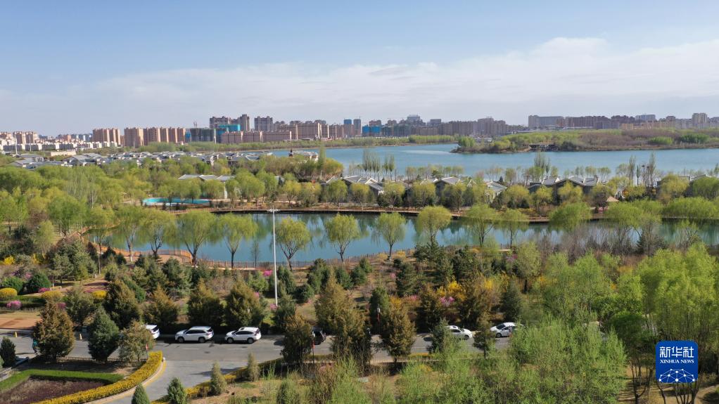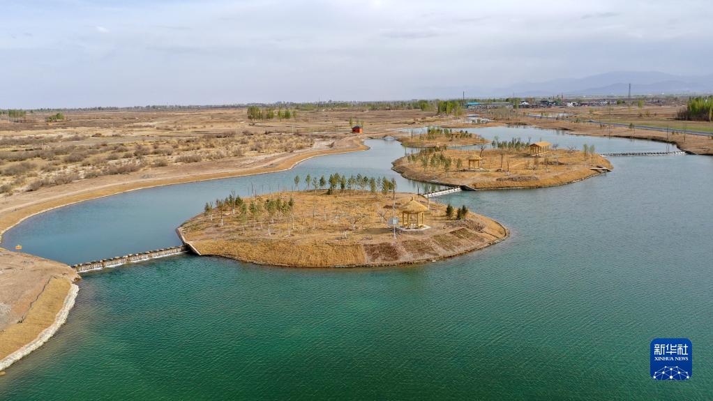 這是甘肅省張掖市甘州區(qū)境內(nèi)的蘆水灣旅游度假區(qū)(4月12日攝,無人機照片)。新華社記者 陳斌 攝
