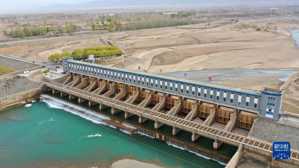 這是在黑河上游的草灘莊引水樞紐(4月13日攝,無人機照片)。新華社記者 陳斌 攝