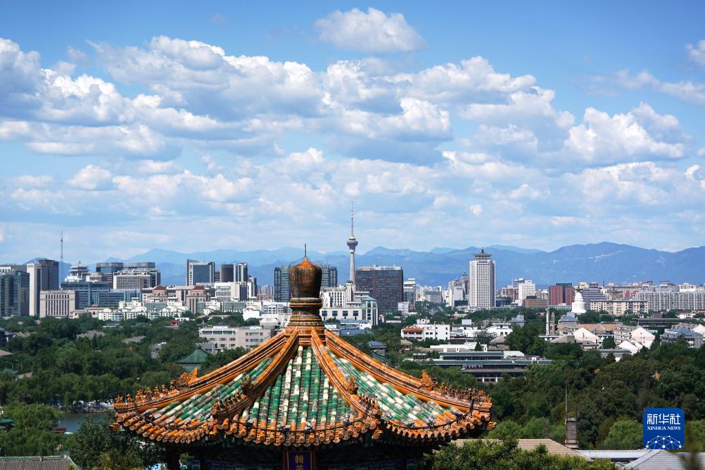 在景山公園拍攝的藍天白云下的北京城市風光(2020年5月26日攝)。新華社記者 鞠煥宗 攝