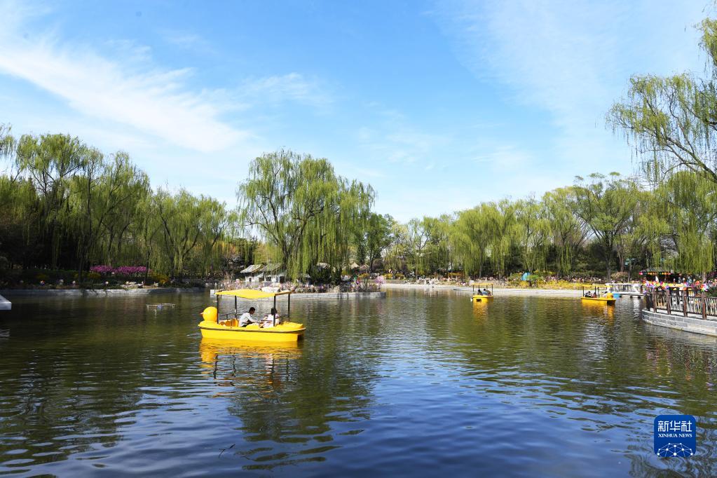 游客在北京南宮五洲植物樂園劃船(2021年4月3日攝)。新華社記者 任超 攝