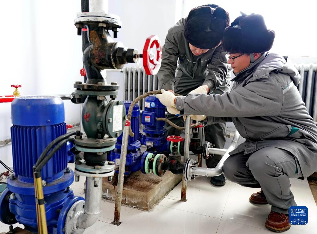 2017年12月15日,國網崇禮區供電公司的工人在幫助張承高速崇禮北收費站保養蓄熱式電鍋爐的供電線路。新華社記者 楊世堯 攝