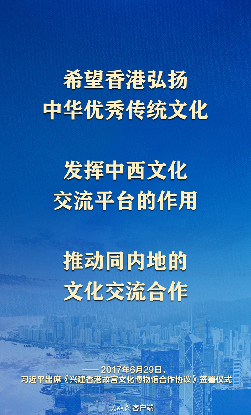 習近平主席深情期許:“希望香港弘揚中華優秀傳統文化,發揮中西文化交流平臺的作用,推動同內地的文化交流合作。”