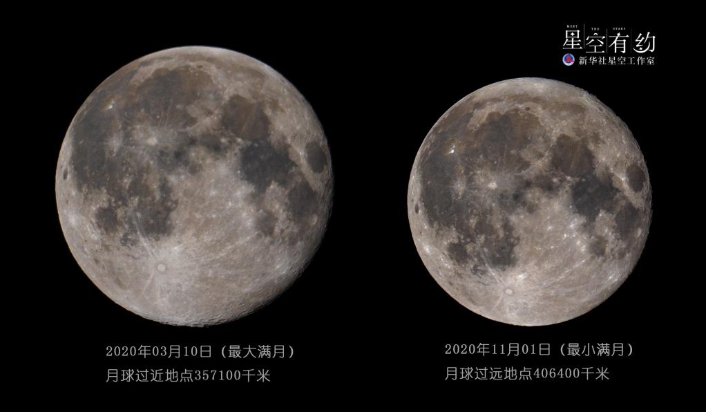 這是楊婧2020年拍攝的該年度“最大滿月”和“最小滿月”(拼版)。(本人供圖)