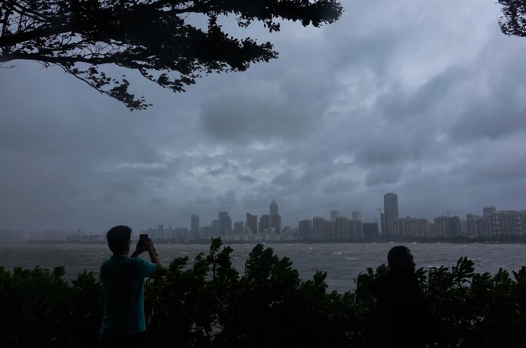 2021年10月13日,市民在海口市保利中央海岸拍攝臺風“圓規”登陸情況。新華社記者 楊冠宇 攝