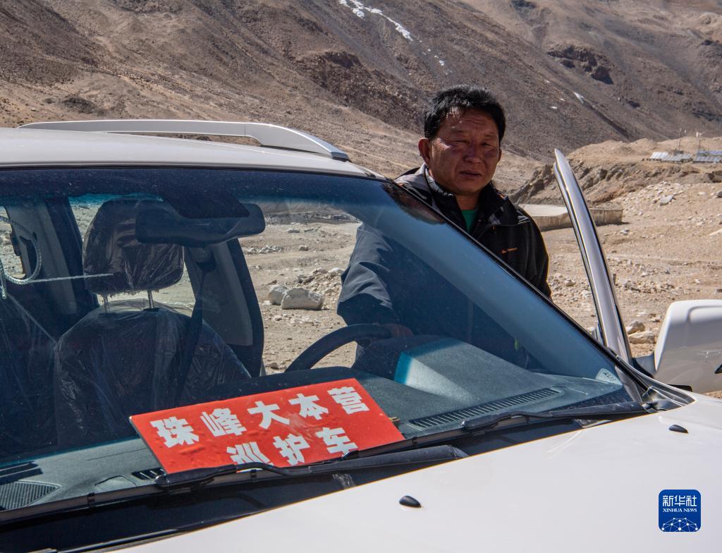 拉巴次仁駕駛巡護車在珠穆朗瑪峰國家級自然保護區內巡邏(2020年5月15日攝)。新華社記者 孫非 攝