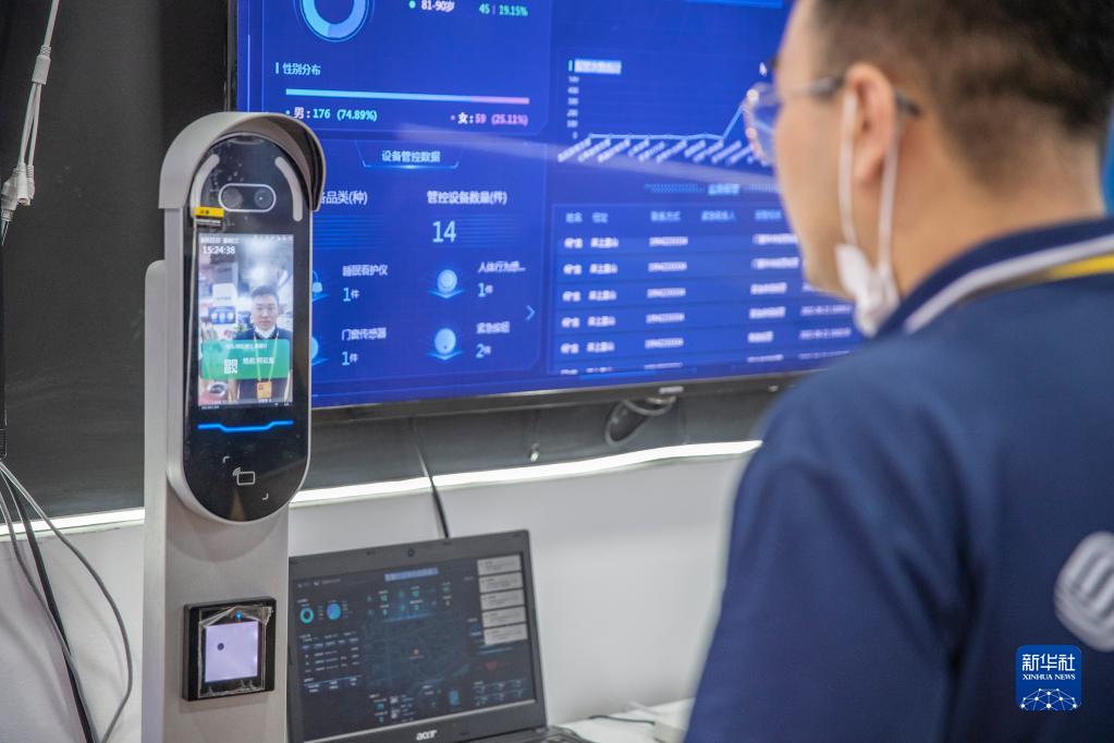 8月21日,工作人員在2022智博會上演示搭載有健康監測功能的智慧門禁系統。新華社記者 黃偉 攝